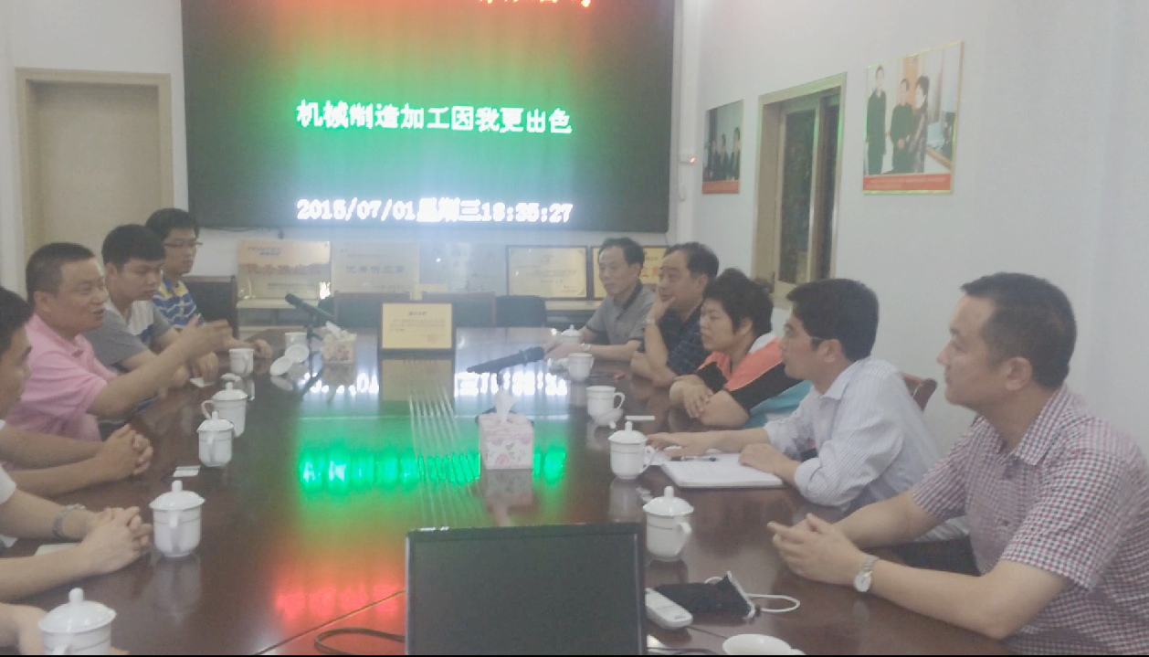 2015年7月1日下午,中共海安縣政法委書記盛慧琴(右三)專程來科星公司調研,白甸鎮黨委書記劉建華(右二),鎮長劉建軍(右四),黨委副書記宋華存(右一),公司董事長吳龍鐵參加了活動。圖為中央特聘“千人計劃”專家姜興茂(左三)團隊匯報和我公司合作的納米項目研發進展的情況。