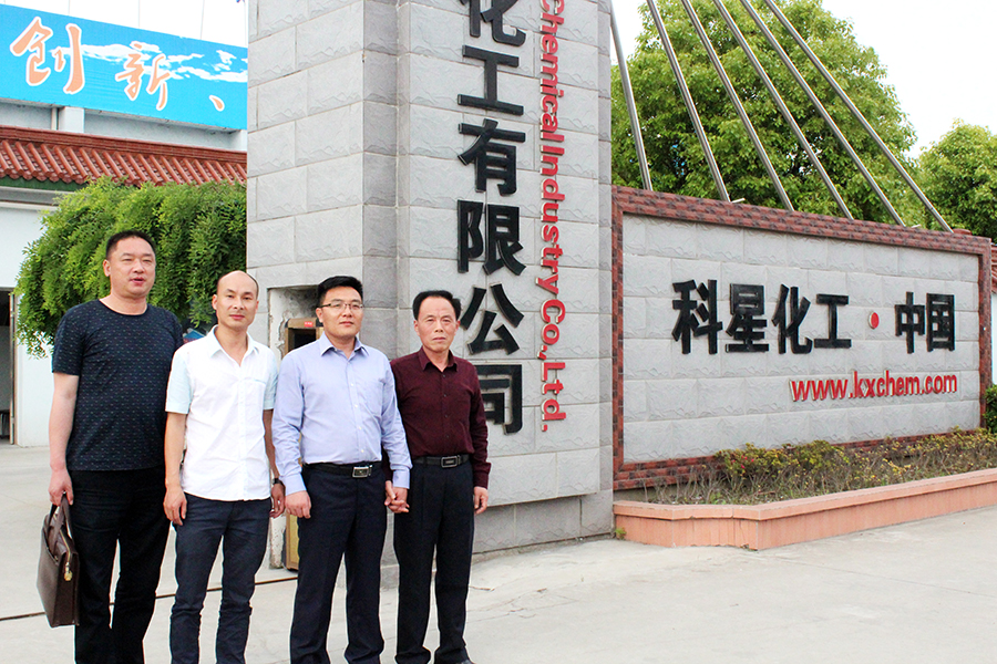 浙江中興減震器制造有限公司品管部劉學海部長(右二)、林茂平課長(右三),南通科星化工有限公司董事長吳龍鐵(右一)、副總經理華井生(左一)