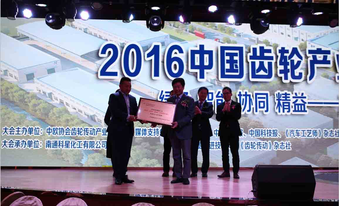 2016年11月23日,在“2016中國齒輪產(chǎn)業(yè)發(fā)展高峰會議”上,公司被中歐齒輪協(xié)會授予“中國綠色制造工藝科研與產(chǎn)業(yè)化基地”的稱號。
