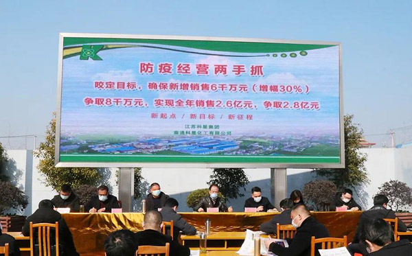 二十天后的2月20日,“防疫經(jīng)營(yíng)兩手抓,咬定目標(biāo),確保新增銷售6千萬(wàn)元(增幅30%),爭(zhēng)取8千萬(wàn)元,實(shí)現(xiàn)全年銷售2.6億元,爭(zhēng)取2.8億元”動(dòng)員大會(huì)在廠區(qū)露天廣場(chǎng)召開。會(huì)議直奔主題,緊湊明快,現(xiàn)場(chǎng)激情高漲,令人振奮。這是科星公司在做好疫情防控的前提下,召開的一次具有戰(zhàn)略意義的動(dòng)員會(huì)。