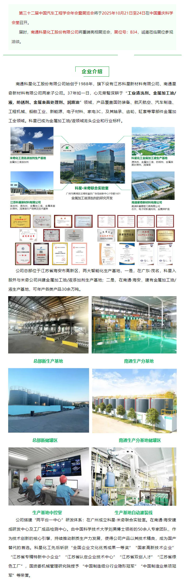 聚焦重慶!第三十二屆汽車工程學會10月啟幕,科星化工攜明星產品亮相B34展位